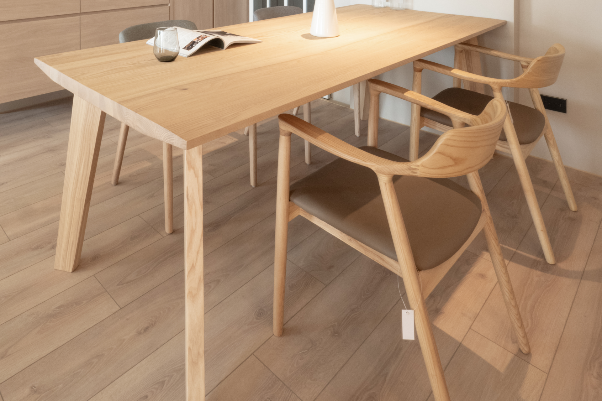 餐廳區以輕盈明亮為核心,結合全實木淺色家具與懸空桌面,打造出通透且具有設計感的用餐空間: