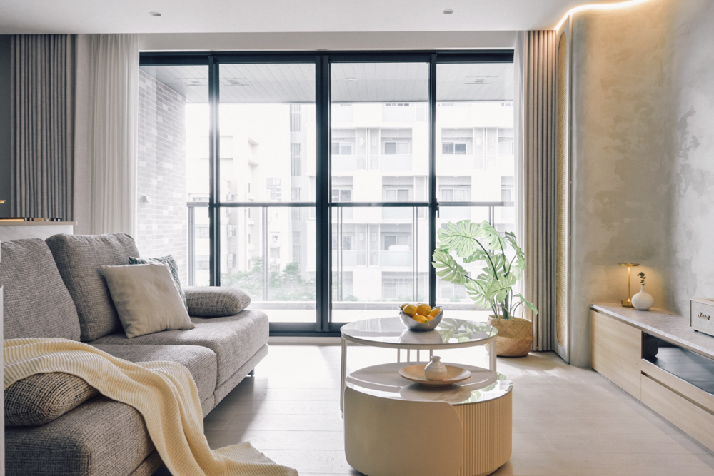 柔光自落地窗灑入,映照在溫潤木質地板上,空氣裡帶著柔和的暖度。