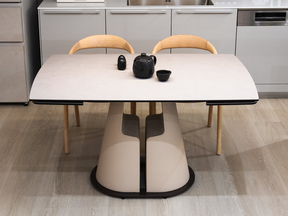 桌面可依不同時刻自由伸縮,從日常的四人晚餐、孩子寫作業的午後時光,