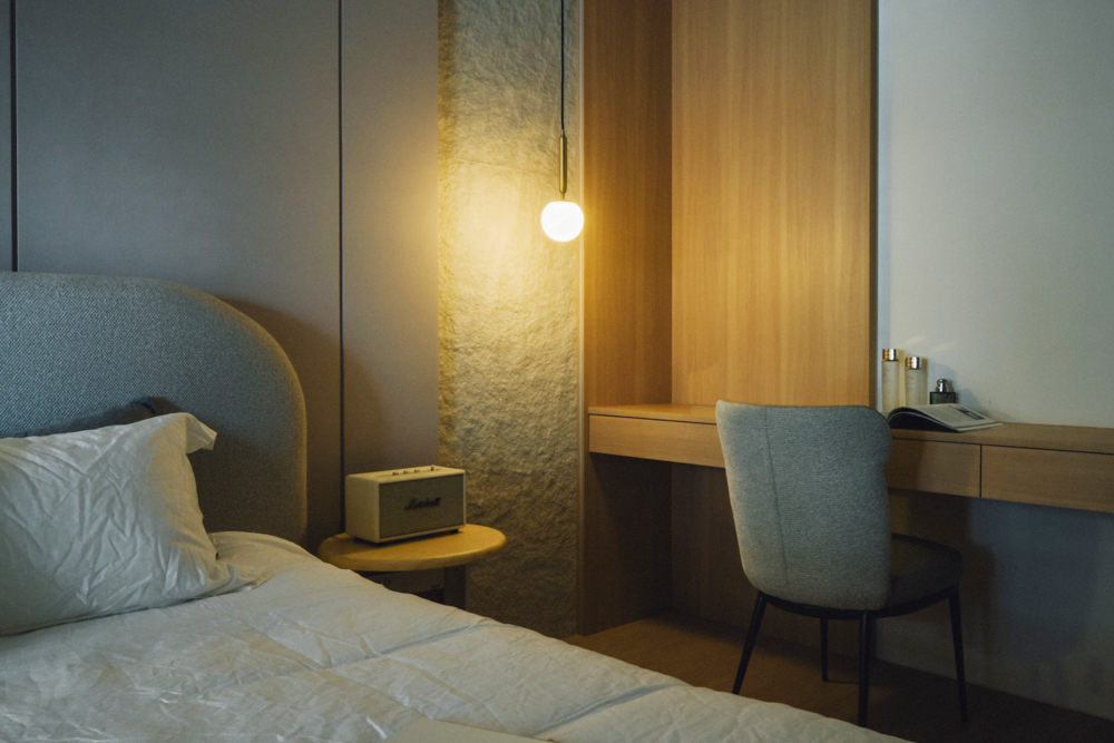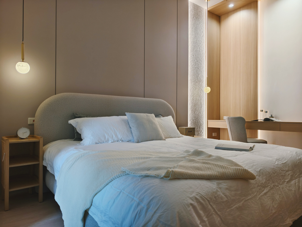 整個臥室浸潤於安靜而高級的柔和氣息,夜晚是放鬆與休憩的最佳時刻。