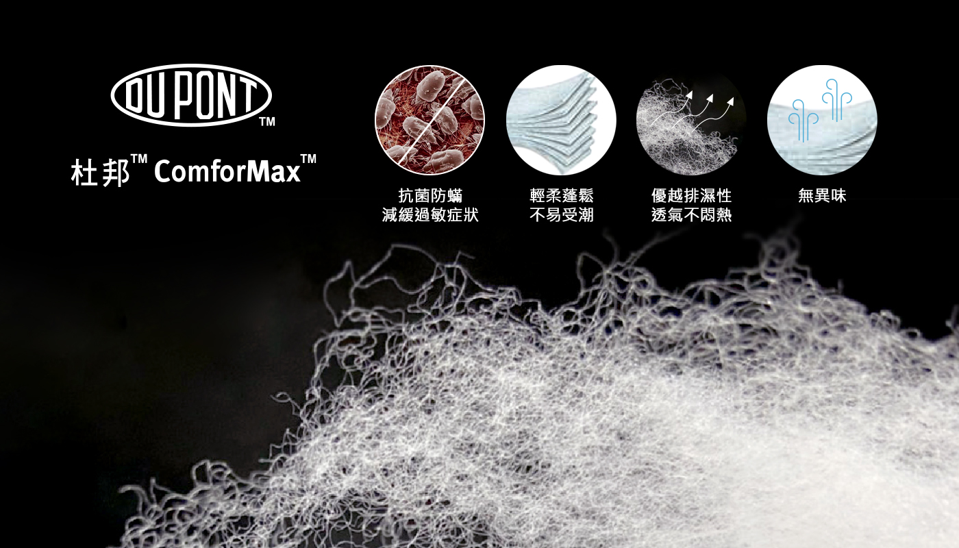 舒適包覆、無毒抗菌、透氣排濕,可降低過敏原,帶給肌膚天然舒柔享受。